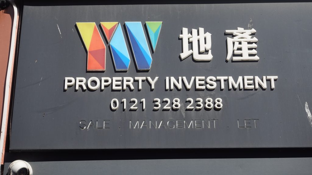 This property investment business, on Hurst Street, is involved in the sale, management and lettings of properties in the Birmingham area. The Chinese characters on display here are 地產. Their company also do travel packages including flights, tours and assistance with visa applications. If you find this establishment then write down the name of the company so you can send it to us with the rest of your answers.