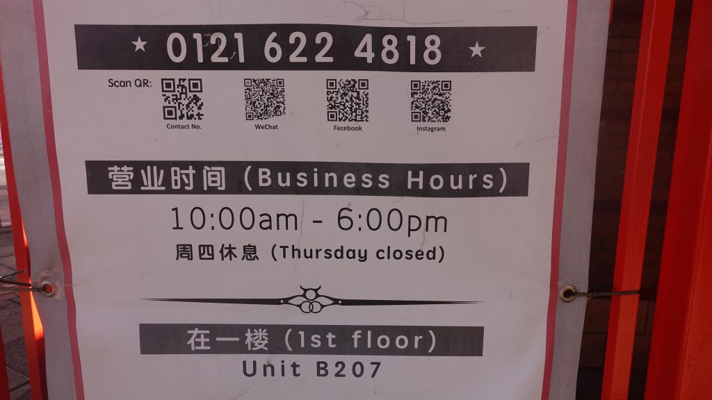 Last week we covered the High Street of Selly Oak, and this week’s edition of Birmingham Find a Phone Number scavenger hunt takes us to Birmingham’s Chinatown. The game is simple we present a photo of a part of a shopfront of businesses in Chinatown. You will see the phone number and part of the storefront, but not the whole thing. Your job is to locate the shop and email us with the name of the shop. There will be several shops in this weeks edition. When you’ve have tracked down all the shops send us the list of names to: findaphonenumber.uk@gmail.com. If you like we can tweet your name as winner from or X account. So without further ado, let’s get this Birmingham Chinatown scavenger hunt game underway. Good luck guys, go find a phone number…..