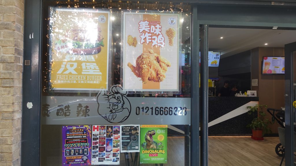 Having left the Arcadian, we move back on to Hurst Street, and, moving towards the Pershore Road, we find this little chicken place. Their number is 0121 6666 232. What is the name of this business. Note down and send to us by email.