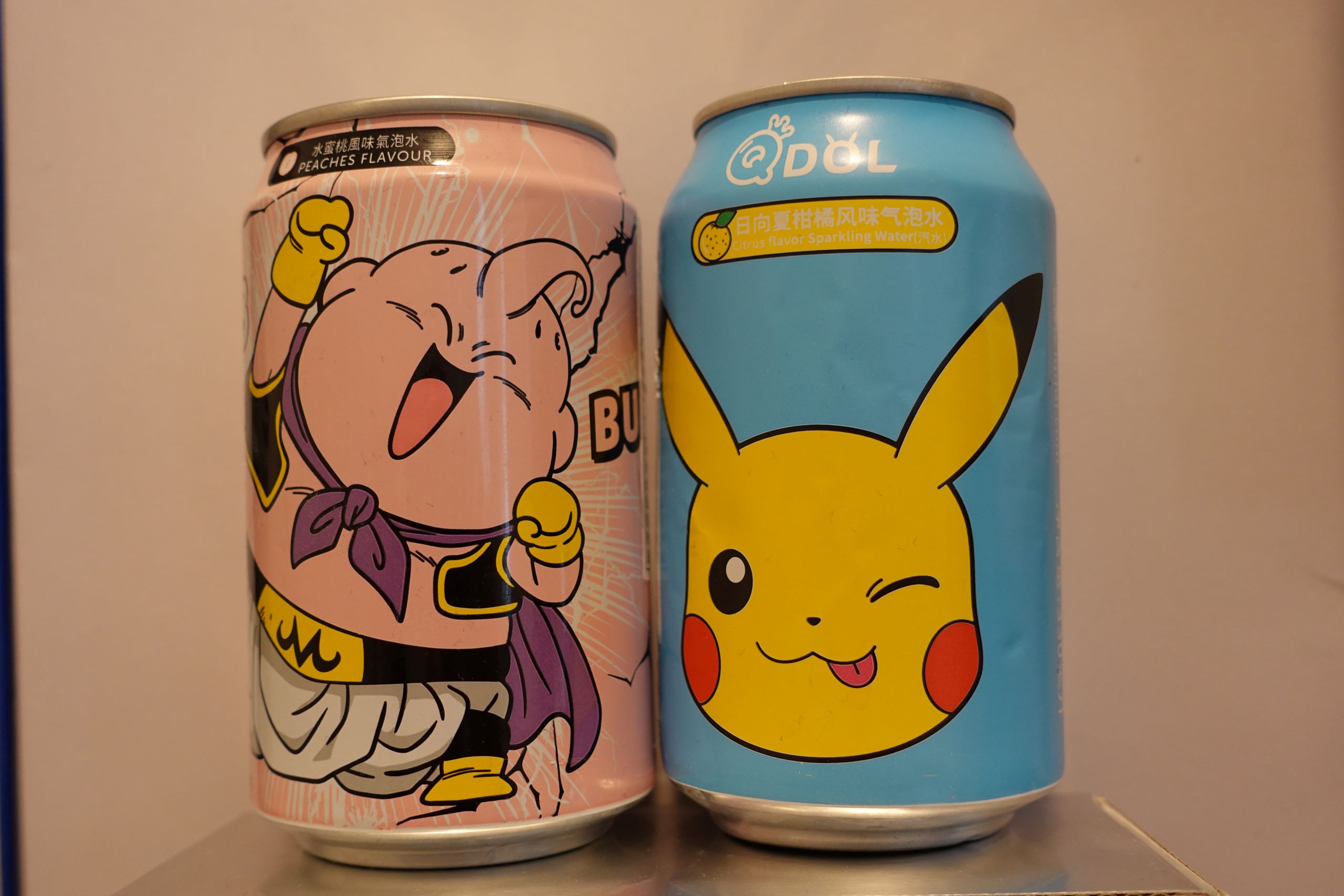 QDOL soft drink. DragonBall Z character and Pikachu character.